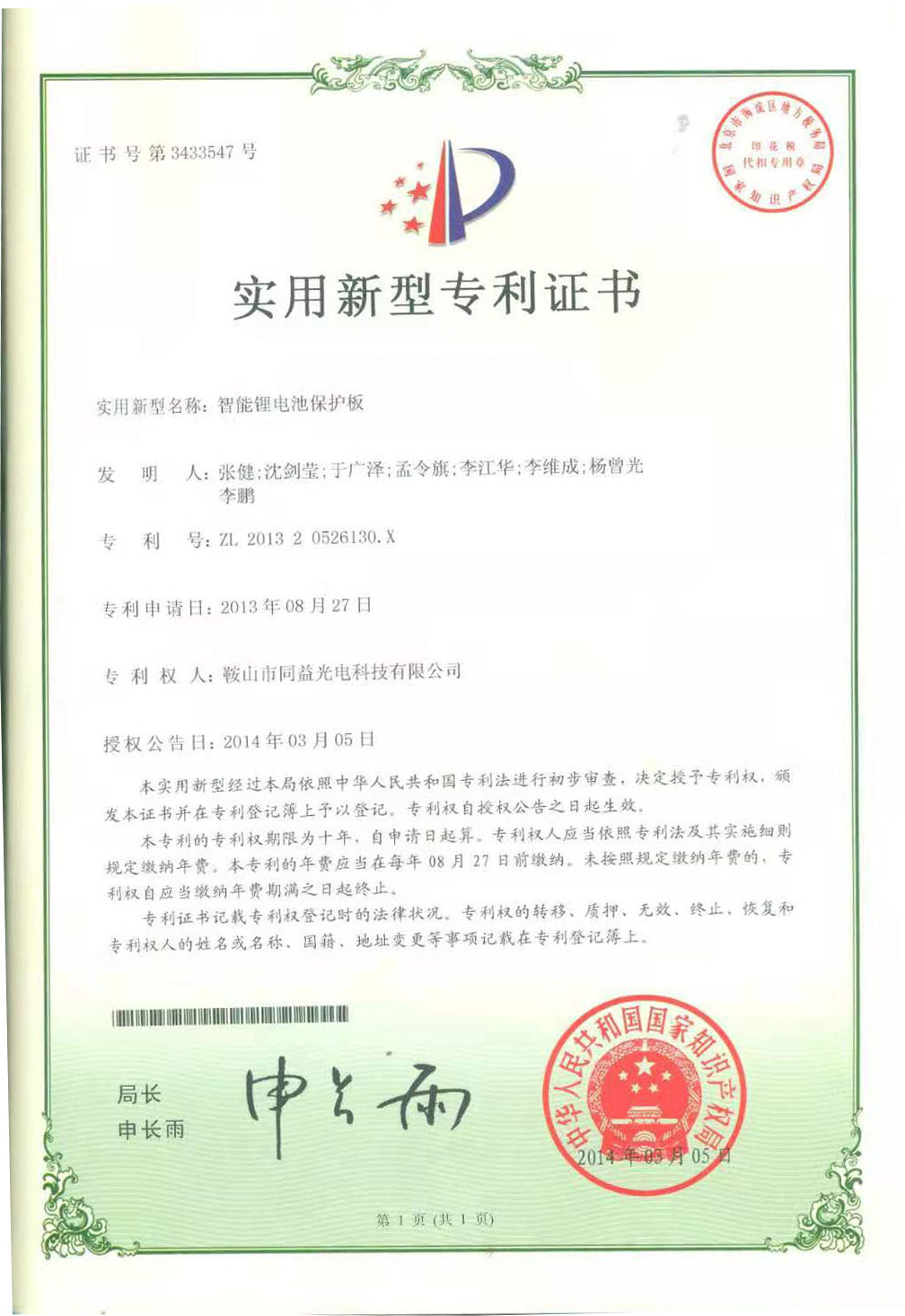 下一篇:實(shí)用新型專利證書