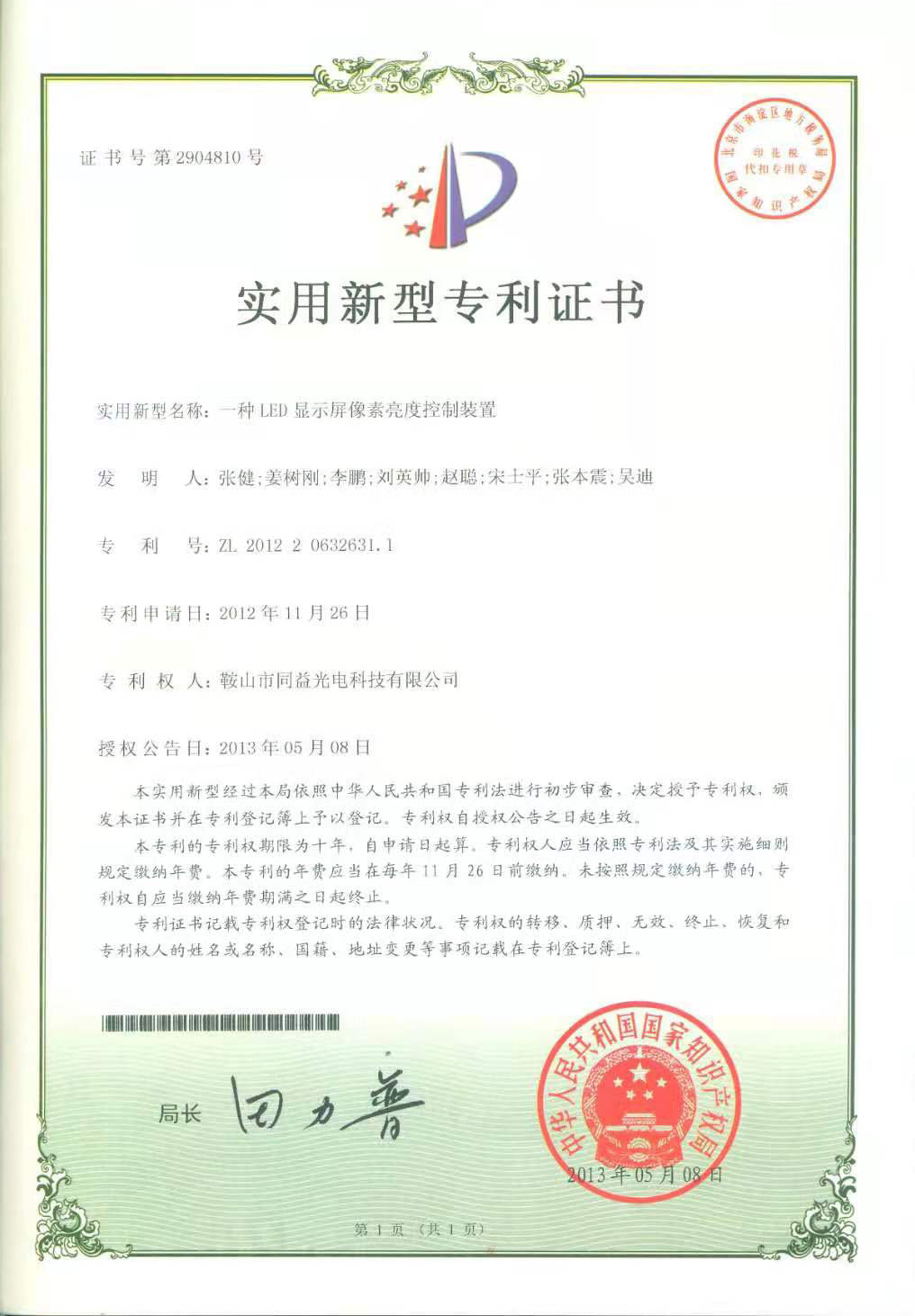 下一篇:實用新型專利證書
