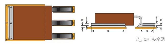 當腳長(L)小于3倍引線寬度(W),最小側(cè)面連接長度(D)等于100%(L)