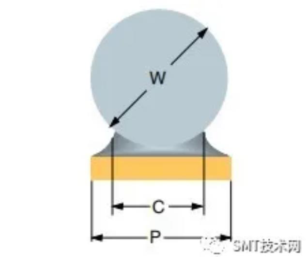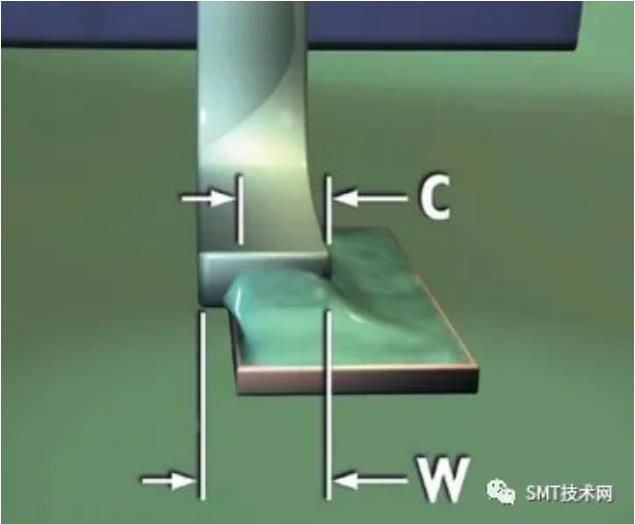 不良:最小末端連接寬度(C)小于引腳寬度(W)的75%