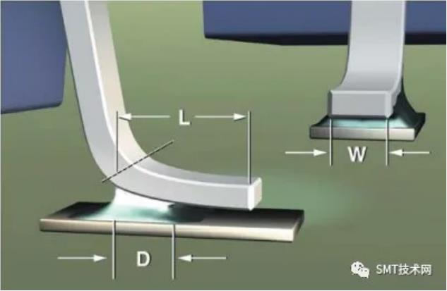 可接受:當腳長(L)大于3倍引線寬度(W)時,最小側(cè)面連接長度(D)等于或大于3倍引線寬(W),