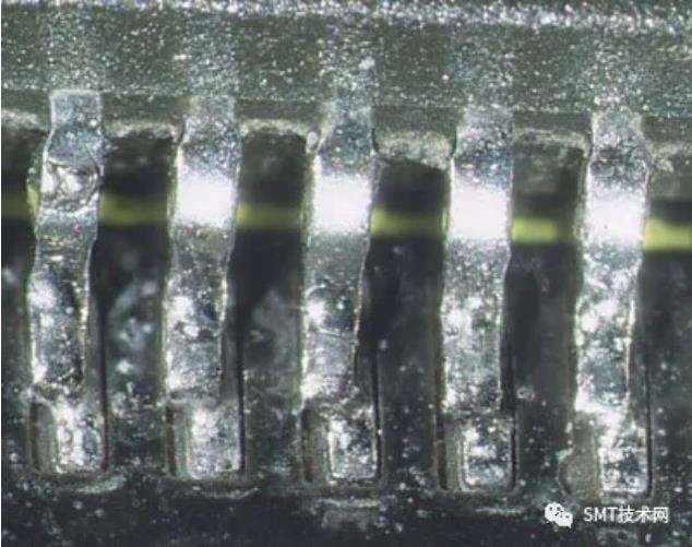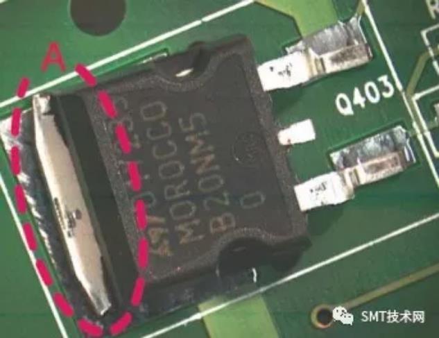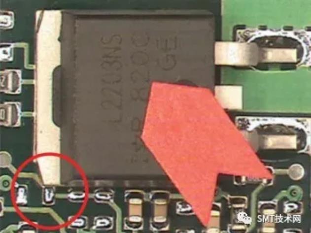 3、散熱面末端端子的連接寬度與焊盤接觸區(qū)域的潤濕小于100%。4、散熱面偏出違反最小電氣間隙