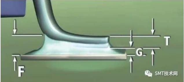 可接受:最小跟部填充高度(F)等于焊料厚度(G)加連接側(cè)的引線厚度(T)