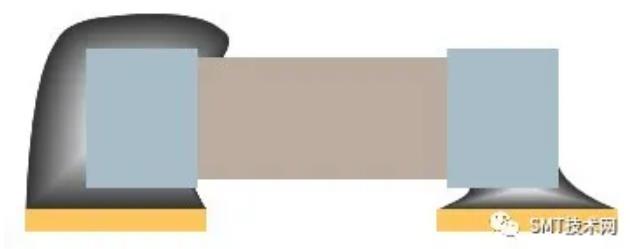 右圖也呈現(xiàn)了元器件側(cè)立妨礙末端連接寬度的形成