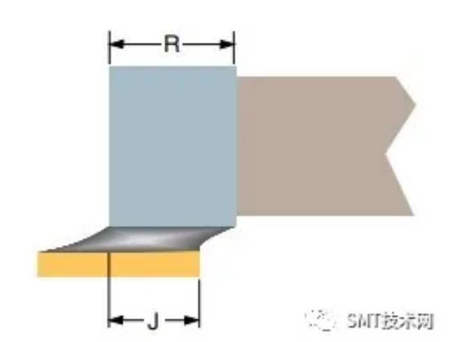 目標:元器件端子與焊盤之間的末端重疊(J)至少為元器件端子長度(R)的75%