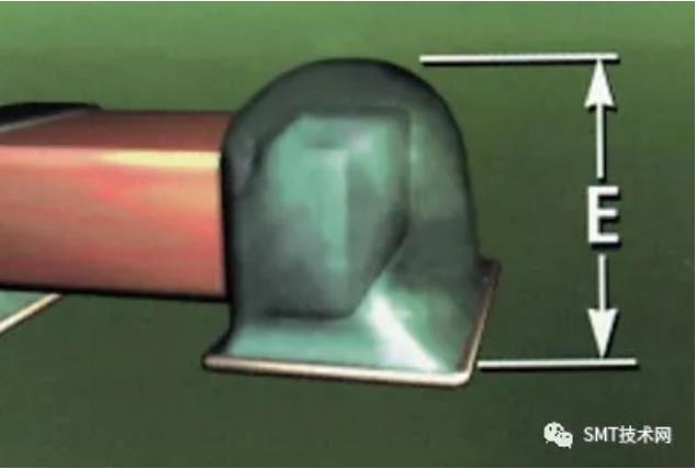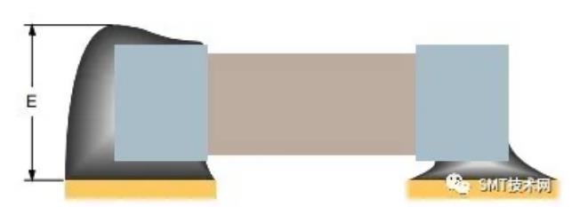 目標:最大爬錫高度(E)可以偏出焊盤和/或延伸至端子的端帽金屬鍍層頂部,但不可進一步延伸至元器件本體