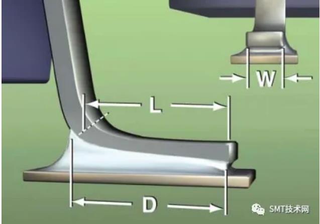當腳長(L)小于3倍引線寬度(W),最小側(cè)面連接長度(D)小于100%(L)