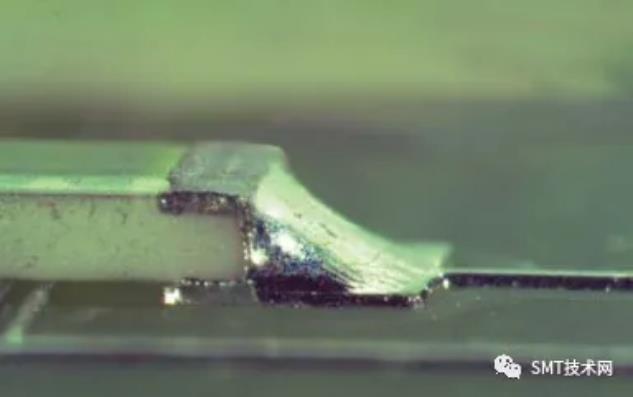 2、散熱面末端端子的末端連接寬度與焊盤接觸區(qū)域100%潤濕